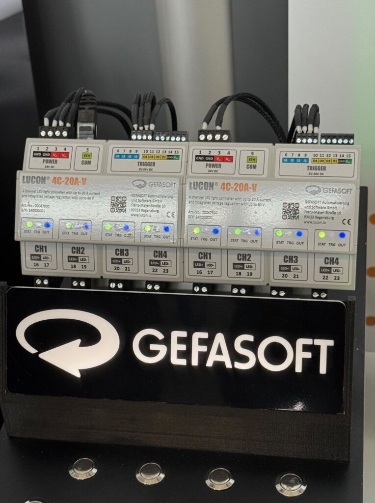 Gefasoft präsentierte erstmals einen Prototyp des hochpräzisen Lucon Lichtcontrollers 4C-20A-V auf dem European MV Forum. Vier unabhängige Kanäle, bis zu 20A pro Kanal und eine integrierte Spannungsregelung bis 60V ermöglichen einen flexiblen Einsatz. Der Controller verfügt über eine Ethernet-Schnittstelle und damit über einen integrierten Webserver und erscheint in Q1/26.