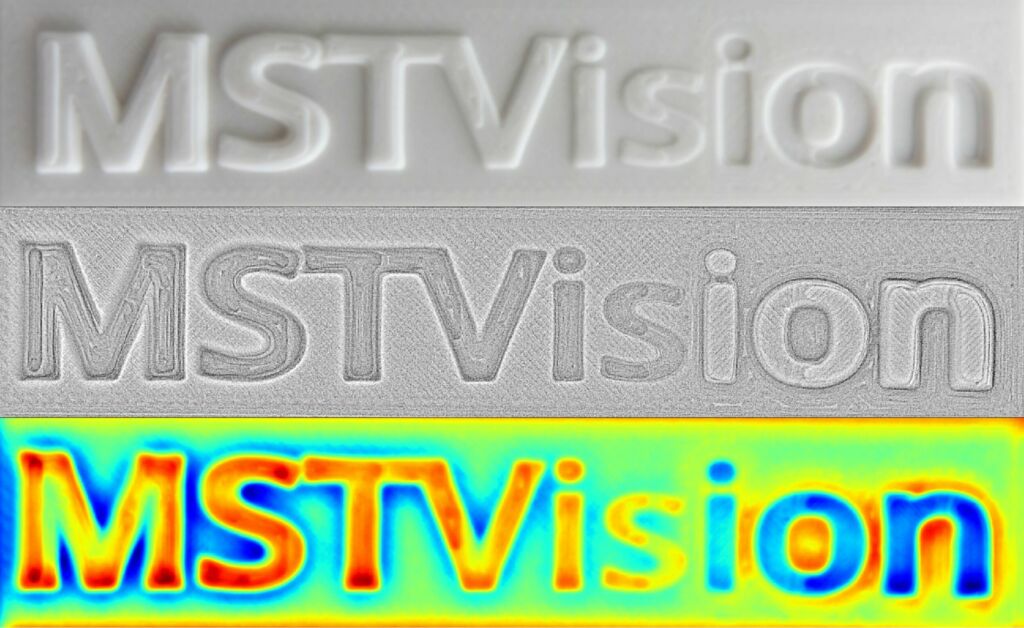 MSTVision bietet seit Jahren die MultiChannel-Technologie an, die durch zeitliches Multiplexing die Erfassung von bis zu zehn Beleuchtungsanordnungen mit einer oder mehreren Zeilenkameras in nur einer Relativbewegung ermöglicht. Mit der optionalen Erweiterung kann der Photometric Stereo Algorithmus effizient im FPGA des Framegrabbers angewendet werden. So stehen die berechneten Bilder (Albedo, Gradienten in X und Y, mittlere Krümmung) praktisch ohne zusätzliche Latenz und ohne CPU-Belastung direkt zur Verfügung. Sogar eine individuelle Bewegungskompensation für jede einzelne Zeile ist möglich. In Kombination mit sogenannten Oblique Beam-Linienleuchten, d.h. Leuchten, bei denen das Licht in der Ebene seitlich nach links oder rechts geneigt abgestrahlt wird, können Systemintegratoren eigene Lösungen entwickeln. Die meisten Linienlichter kombinieren jedoch normale LEDs mit einfachen Ablenkfolien, um den Abstrahlwinkel zu verändern. Dies führt zu suboptimalen Kontrasten, da die Abstrahlrichtung nur schwach geneigt ist und sich die Lichtkegel aufgrund des großen Öffnungswinkels in der Ebene der Verkippung ungünstig überlagern.