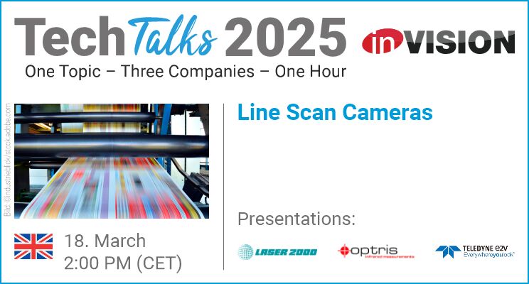 Was gibt es neues zum Thema Zeilenkameras? Die Antworten hierauf bekommen Sie am 18. März ab 14 Uhr (CET) von Teledyne Imaging / Teledyne Dalsa (The view of a market leader on the changes in the linescan business), Laser 2000 (100GigE Line Scan Cameras Up To 16k and 1,000kHz) und Optris (IR cameras with line scan functiunality). Kostenfreie Anmeldung für das einstündige Webinar unter…