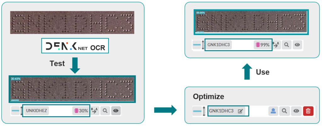 Alle Funktionen und Dienste des Denk Vision KI Hub basieren vollständig auf Cloud-Technologie. Dadurch findet das Feintuning auf eigenen Bilddaten auf einer stets aktuellen und kontrollierten Software-Basis statt und nicht auf irgendeiner Software-Version auf einem lokalen Hardwaresystem. Das dort verwendbare OCR-Modell wird durch die kontinuierliche Weiterentwicklung im technischen Backend immer resistenter gegenüber bereits gelösten Problemen. Dadurch können immer mehr Kundenanwendungen ohne größere Anpassungen oder Nachtraining verwendet werden. ‚Press Play‘ ist wie ein Auftrag an die Denkcloud, die im Hintergrund eine Vielzahl passender Netzmodelle mit unterschiedlichen Architekturen trainiert und dem Anwender letztendlich das beste Ergebnis zur Verfügung stellt.