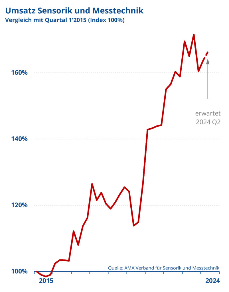 Laut dem AMA Verband für Sensorik und Messtechnik erwirtschaftete die Branche im ersten Quartal ein Umsatzwachstum von 2% verglichen zum Vorquartal. Die Auftragseingänge stiegen zum Jahresbeginn um 9%, verglichen mit dem Vorquartal. Für das zweite Quartal rechnet die Branche mit einem Umsatzplus von 2%.
