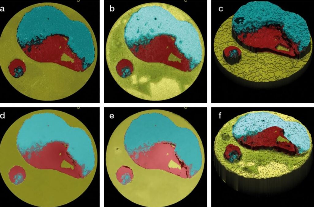 The AdheScan system from Schäfter+Kirchhoff is a complete system for quantifiable and reproducible adhesive fracture surface inspection. Two line-scan cameras deliver high-resolution images with an optical resolution of 11µm of both surfaces of the fracture pair during one inspection. Using the line-scan cameras in a stereo configuration also enables the acquisition of height information with a resolution of 20µm and a rotatable 3D representation of each fracture pair. The user can annotate the specimen in the view that most easily identifies the various fracture patterns.