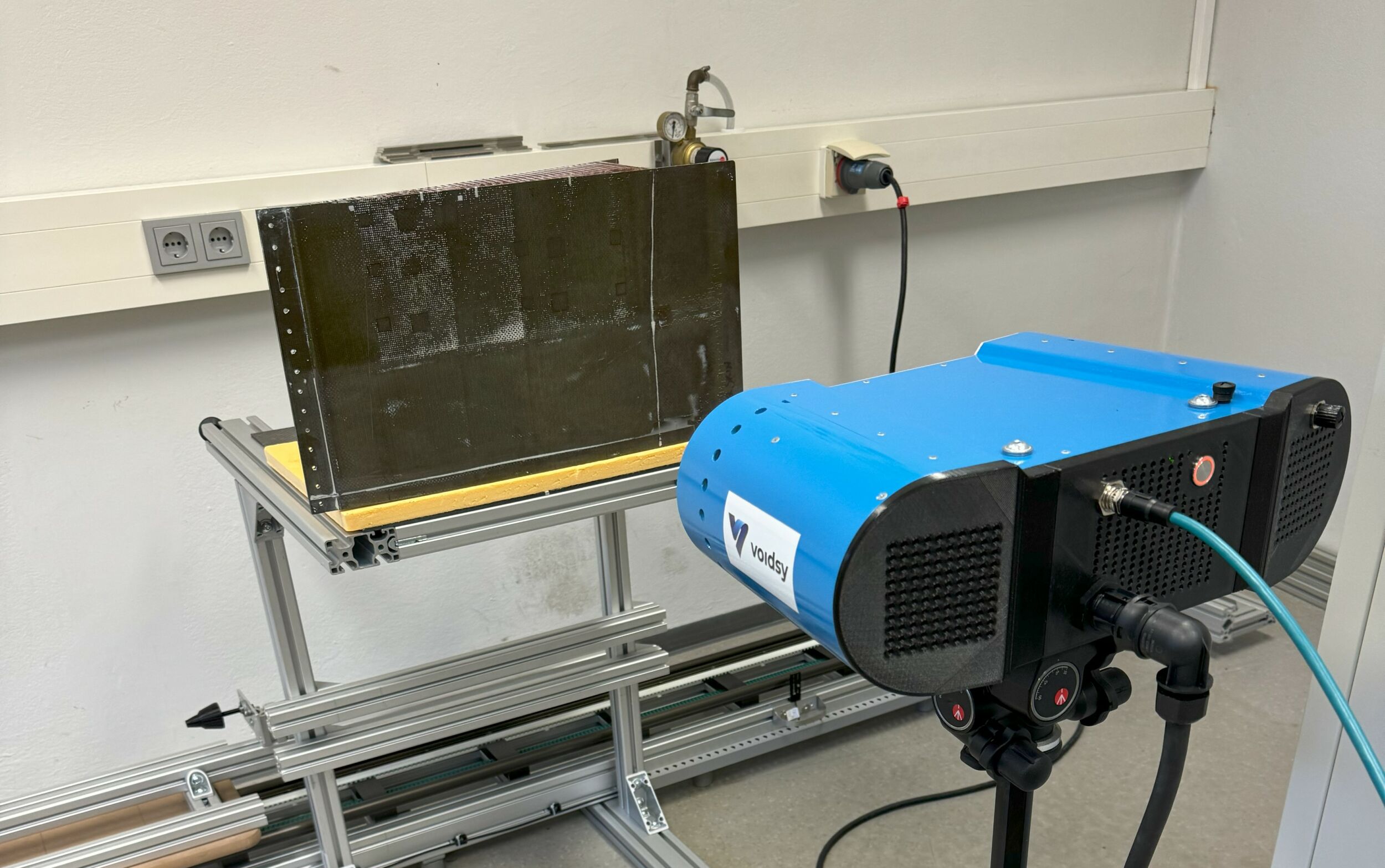 voidsy is an academic start-up of the University of Applied Sciences Upper Austria and initiated the product development of the photothermal tomography system 3D V-ROX. This system significantly improves NDT by offering accurate defect detection and quantification, in a contactless, fast and cost-efficient manner. The system consists of excitation units, a detector unit and an integrated computing unit. Due to its compact design and its low weight (<6kg), it is easily mounted on small robot arms or suitable for mobile, battery-operated applications. Even in manual inspection setups, its compact design facilitates quick setup without the need for alignment adjustments, thanks to its structurally fixed positions of the excitation and vision units.